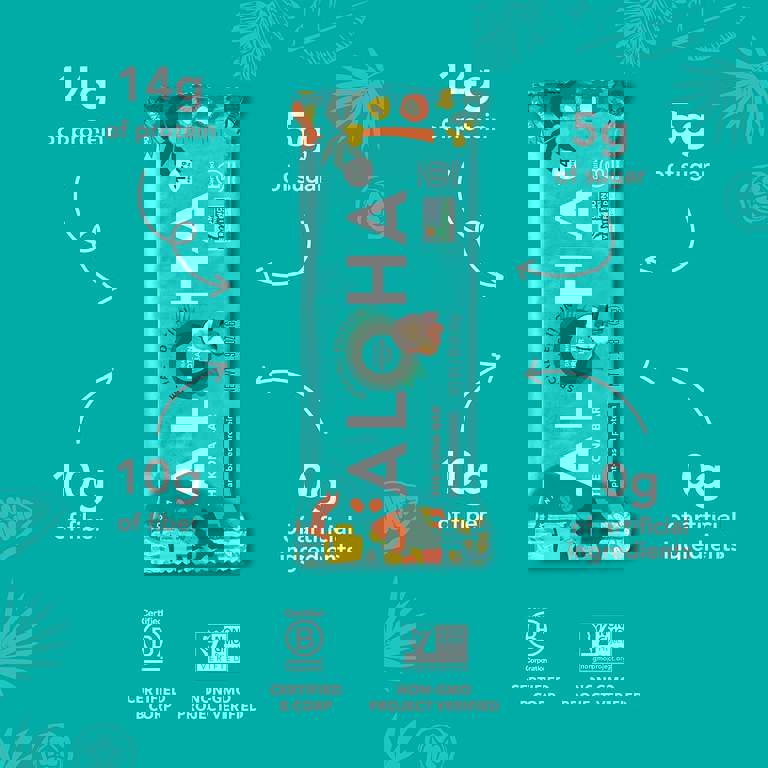 First and foremost, protein content is a key factor to consider when choosing a protein bar. Look for bars that contain at least 10-20 grams of protein per serving to ensure you are getting an adequate amount. At ALOHA, all of our plant-based protein bars come with 14g of protein. Additionally, check the source of the protein. Some bars use whey protein, while others opt for plant-based options such as pea or soy protein. Choose the one that aligns with your dietary preferences and needs.